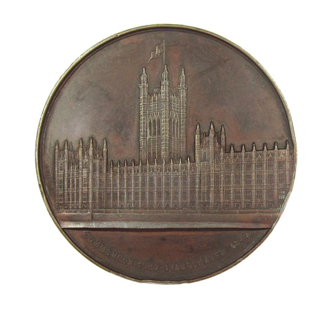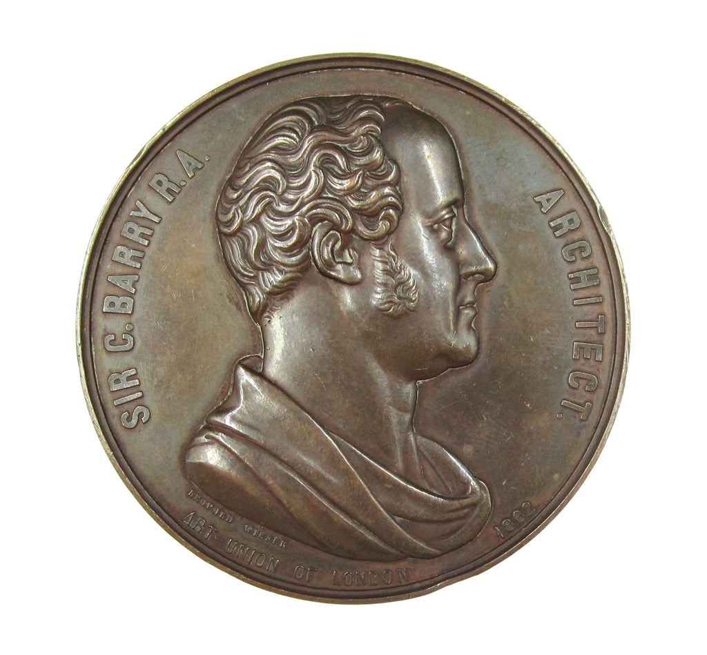 Obverse with bust of Sir Charles Barry, reverse showing river front view of the Houses of Parliment.