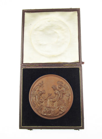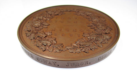 Obverse with Britannia seated, surrounded by female figures bearing the products of Art, Science, Industry and Agriculture. Edge reads 'Arthur Otway. Juror. Class III.