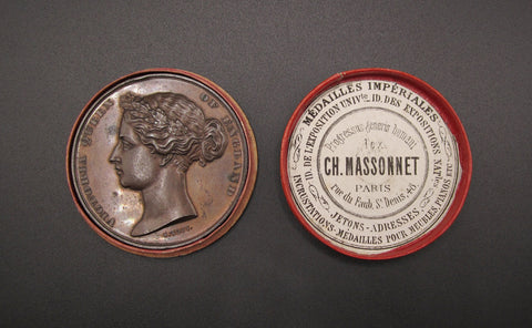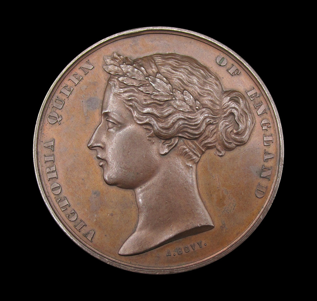 Obverse with young head bust of Queen Victoria, reverse with exterior view of the exhibition building.