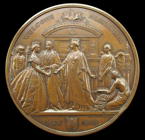Issued by The Corporation of London. Obverse with bust of Alexandra, reverse showing Londinia welcoming Alexandra accompanied by the Prince of Wales.