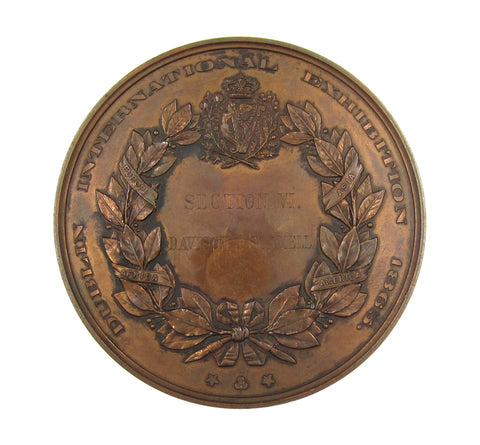 Obverse with a winged female figure flying, Athena below seated before a temple with various objects. Reverse engraved 'Section VI. Davison & Scamell'.