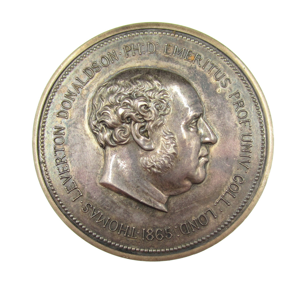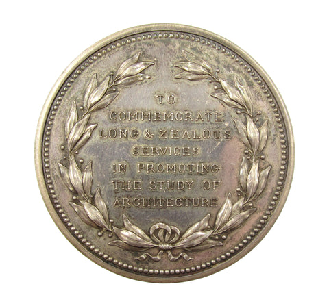 Obverse with head of Thomas Leverton Donaldson. Reverse with 'To Commemorate Long & Zealous Services In Promoting The Study Of Architecture' within wreath. Edge named to 'Hugh Morgan, Session 1905-1906'.