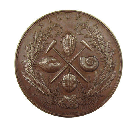 Obverse with bust of Sir Broderick Murchison, reverse with Silurian fossils and two geological hammers in saltire. Edge engraved 'Frank Dixey, 1953. The Geological Society Of London'.