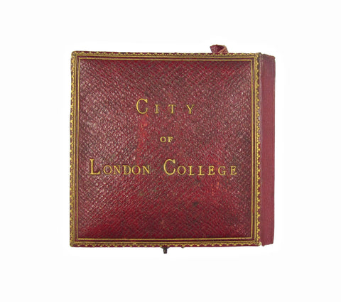 City Of London College prize medal for physical science presented by Theodore Maxwell Esq. Interior of original case embossed with 'Henry Catling - July 1873'.