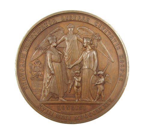 Issued by The Corporation of London. Obverse with uniformed bust of Alexander II facing left. Reverse with Londinia, attended by two cupids, welcoming the Czar standing facing her with Peace in the background with her outstretched wings.