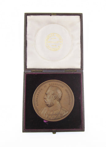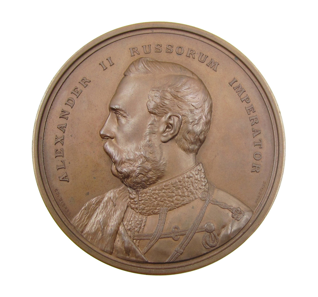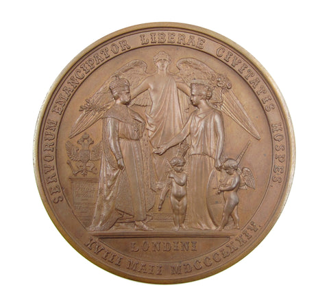 Issued by The Corporation of London. Obverse with uniformed bust of Alexander II facing left. Reverse with Londinia, attended by two cupids, welcoming the Czar standing facing her with Peace in the background with her outstretched wings.