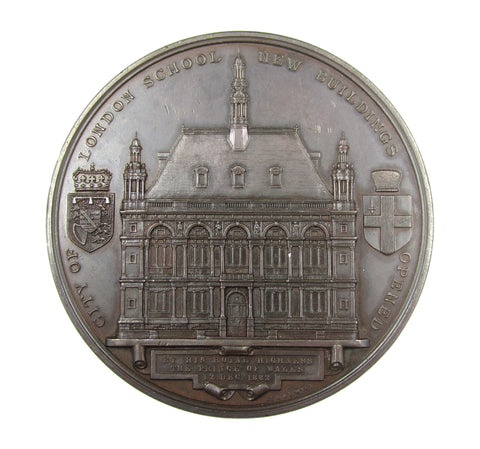 1882 City Of London School New Buildings 77mm Bronze Medal - Cased