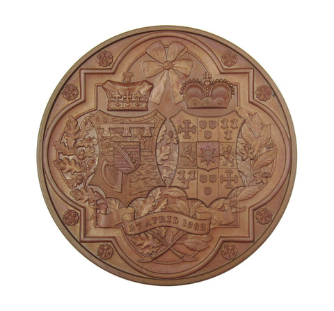 Obverse with conjoined busts of Leopold, Duke of Albany and Princess Helen of Waldeck. Reverse with armorial shields of the couple.