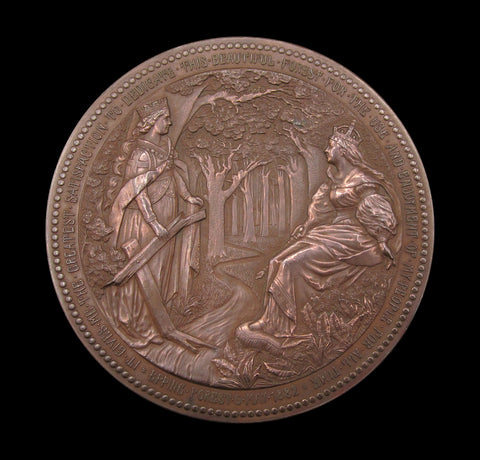 Issued by The Corporation of London. Obverse with bust of Victoria, reverse with Londinia opposite the Queen, holding open gate at the end of a forest.