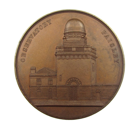 Obverse with bust of Thomas Coats, reverse showing a view of an observatory.