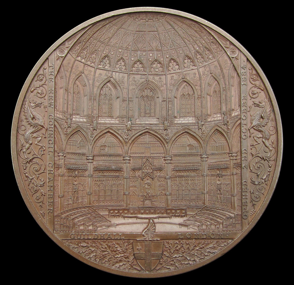1884 New Council Chamber Guildhall 77mm Medal - By Wyon