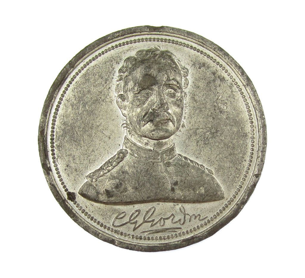 Obverse with uniformed bust of Gordon, reverse with a view of the town of Khartoum.
