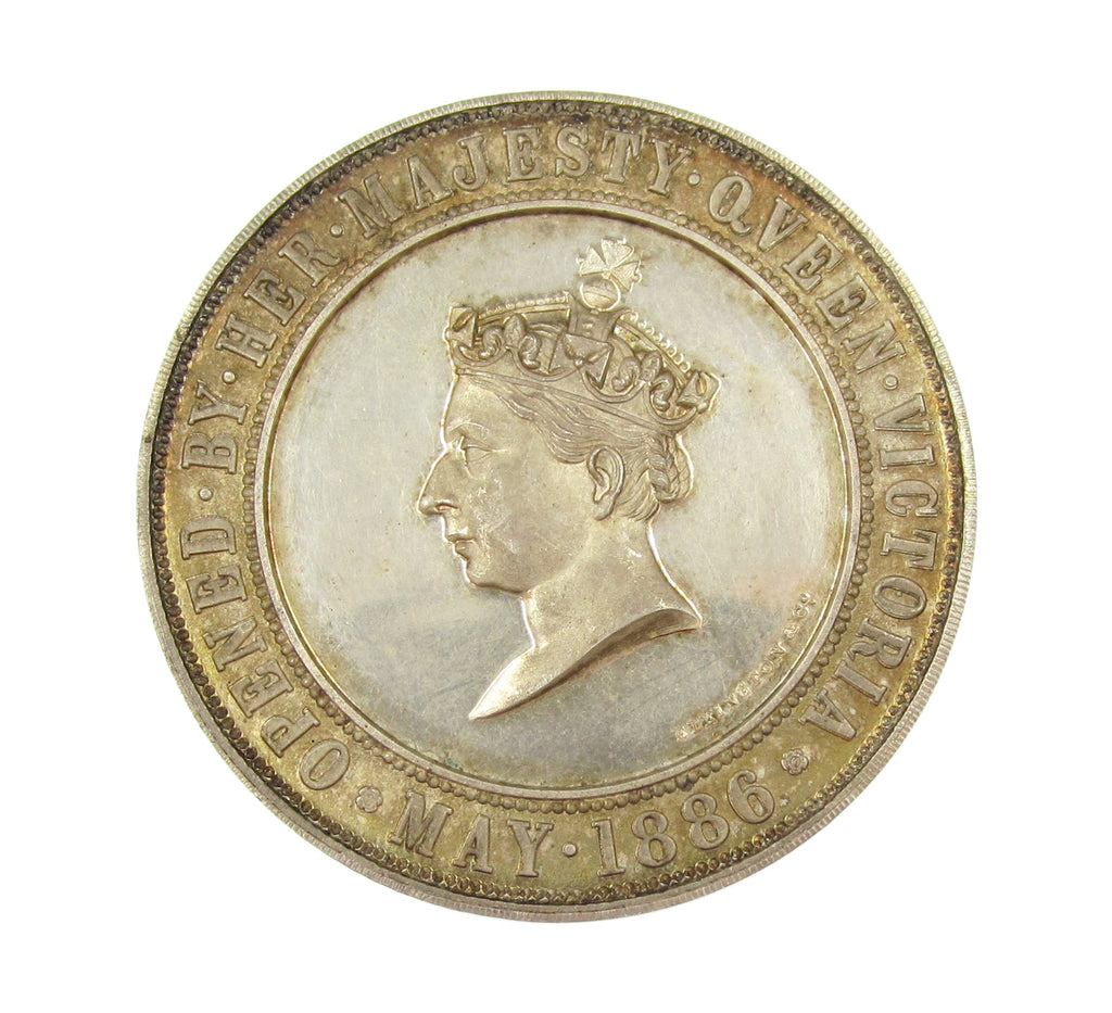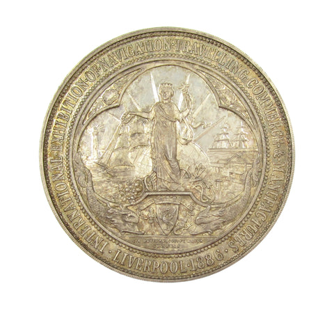 Obverse with crowned bust of Victoria. Reverse showing arms of Liverpool with shipping at sea beyond.