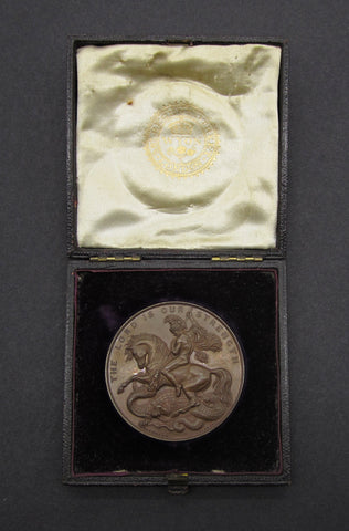 Obverse showing St George slaying dragon (after W.Wyon and in the style of the 1845 Prince Albert medal). Reverse with 'YOUNG MENS’ CHRISTIAN INSTITUTE', within border of emblems of the arts, sciences and industry.