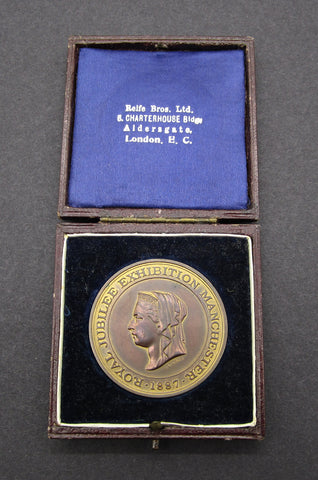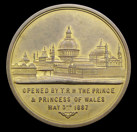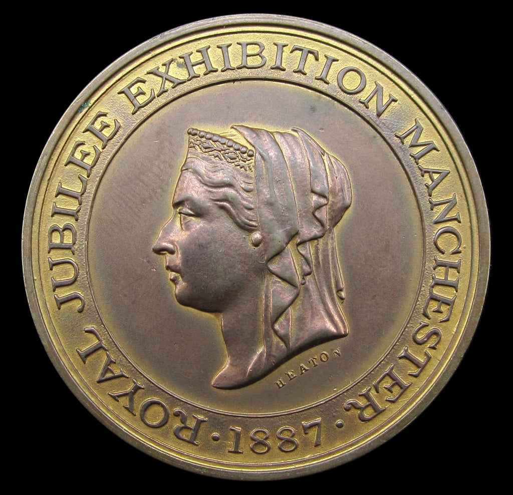1887 Manchester Royal Jubilee Exhibition 44mm Gilt Bronze Medal - By Heaton