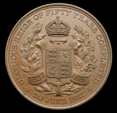 Obverse with veiled bust of Queen Victoria, reverse with shield of Great Britain within wreath, surrounded by border.