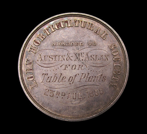 1888 Lorn Horticultural Society 38mm Silver Medal - By Kirkwood