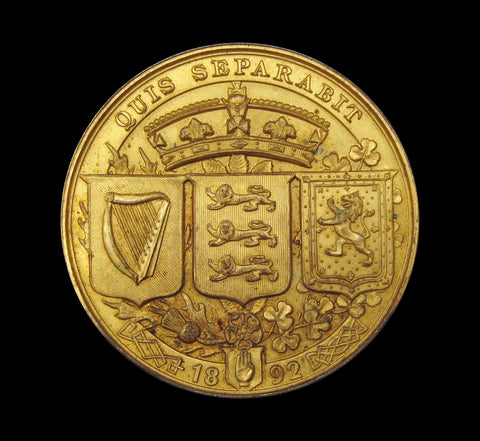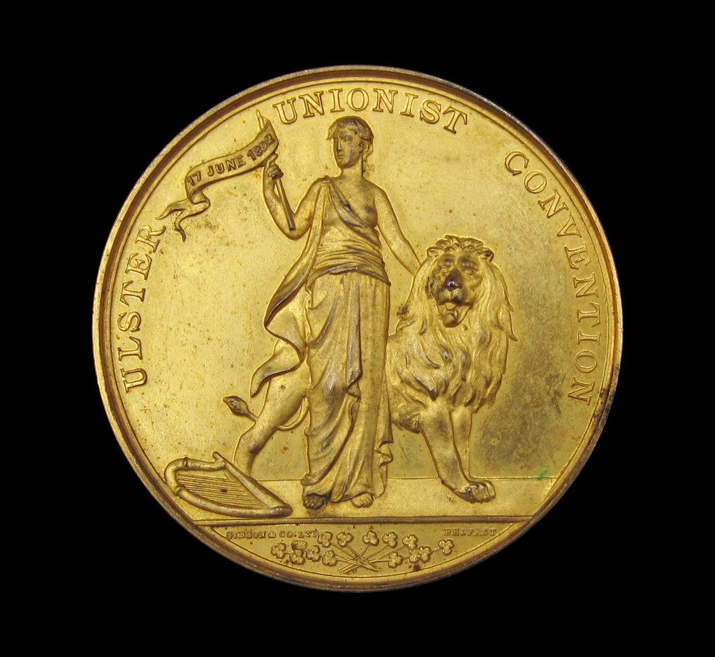 Obverse shows Hibernia leaning beside lion, reverse with shields of England, Scotland & Ireland upon a wreath.