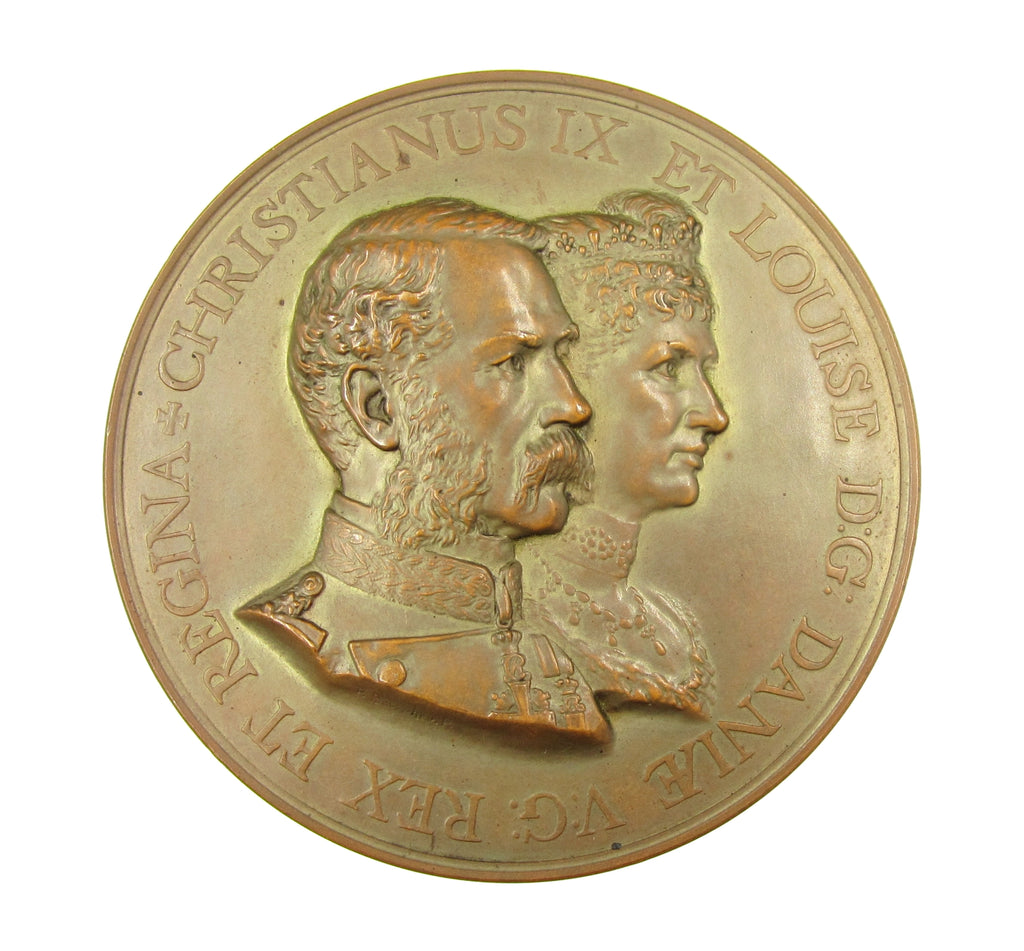 Obverse with conjoined busts of Christian IX & Louise, reverse showing Londinia with facade of Guildhall in the background.