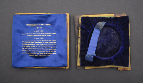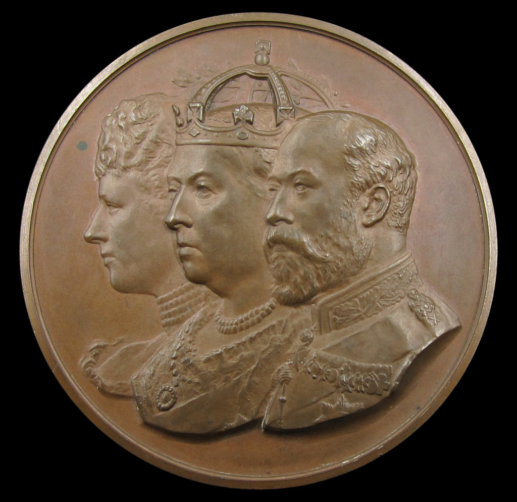 Obverse showing crowned bust of Queen Victoria, between the Prince and Princess of Wales. Reverse with view of Tower Bridge. Issued by the Corporation of London.