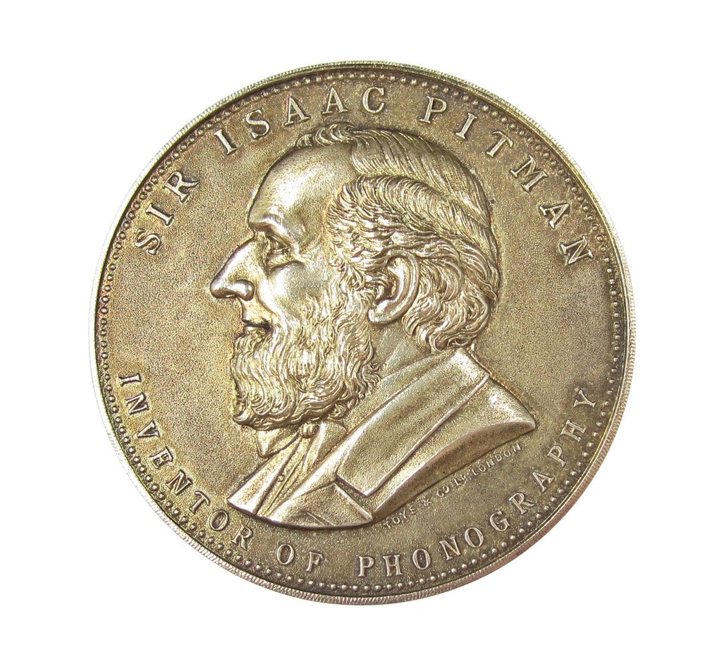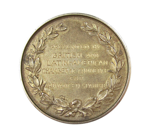 Obverse with draped bust of Sir Isaac Pitman, reverse engraved within wreath 'Presented By British And Latin American Chamber Of Commerce For Advanced Spanish'. Edge named to Elizabeth Grant Robertson.
