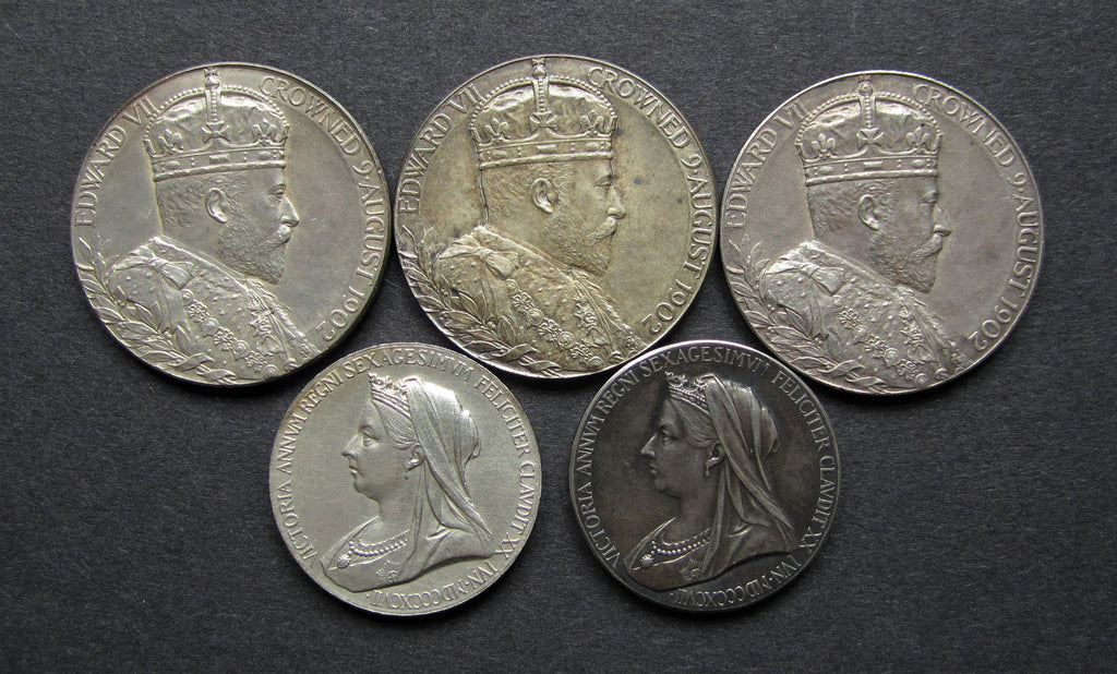 2 x 1897 medals and 3 x 1902 Medals. Generally Extremely Fine or better.