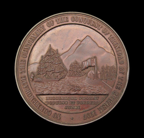 Obverse with uniformed bust of Sir Ralph Abercromby, reverse with a view of Port of Spain.