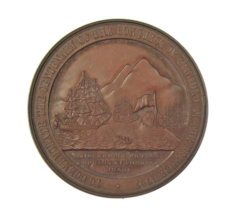 Obverse with uniformed bust of Sir Ralph Abercromby, reverse with a view of Port of Spain.