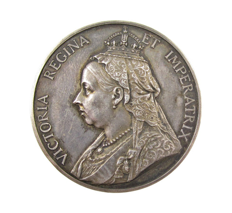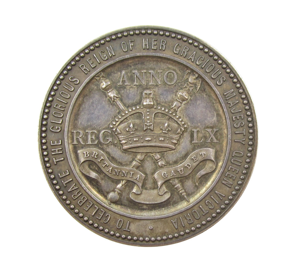 Obverse with crowned, veiled, draped bust of Victoria, reverse with crown on crossed sceptres, border around.