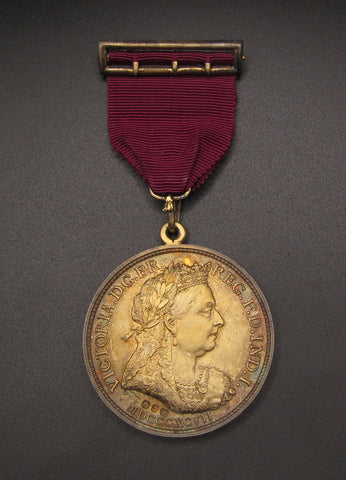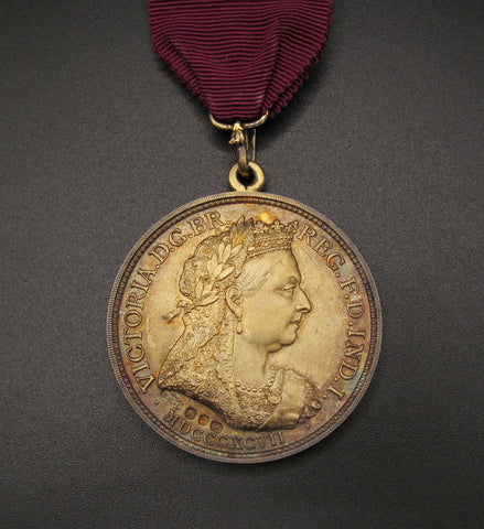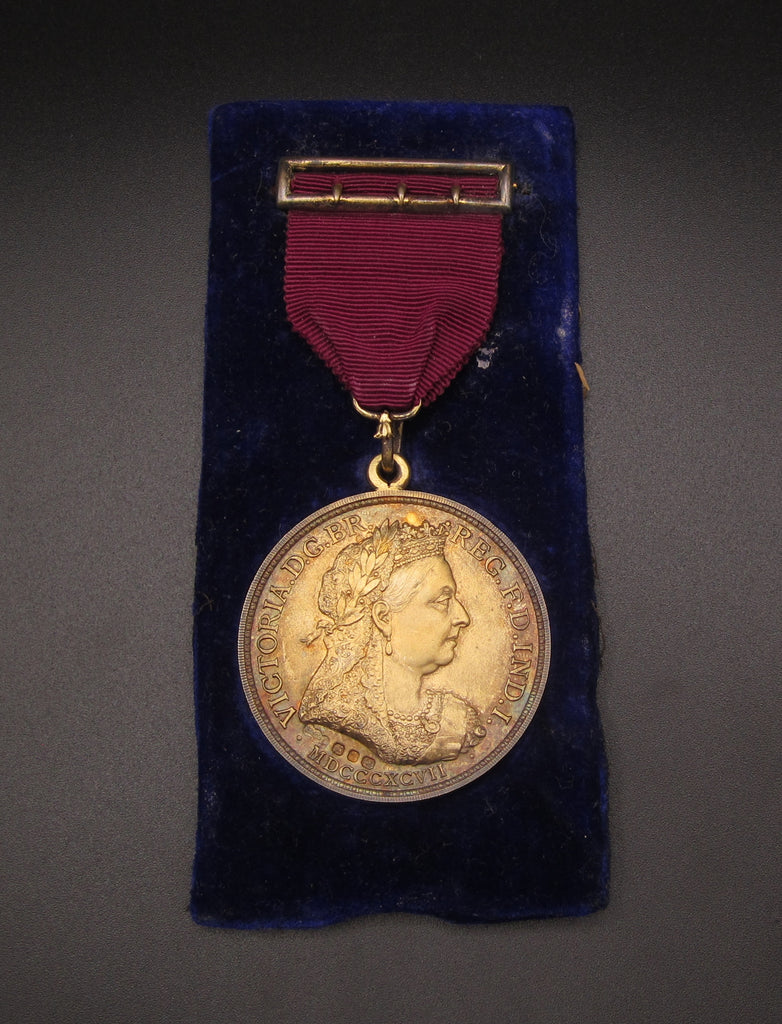 44mm. Gilt Silver. 53.5g (medal only). Hallmarked for Elkington.