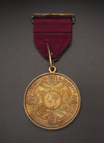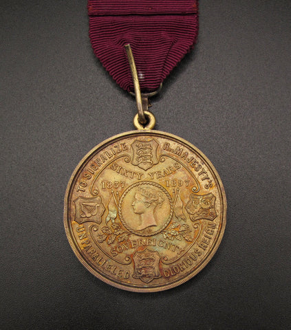 Obverse wutg crowned and veiled bust of Victoria, reverse with central frame showing the young head bust of Victoria, surrounded by flags and legend around.