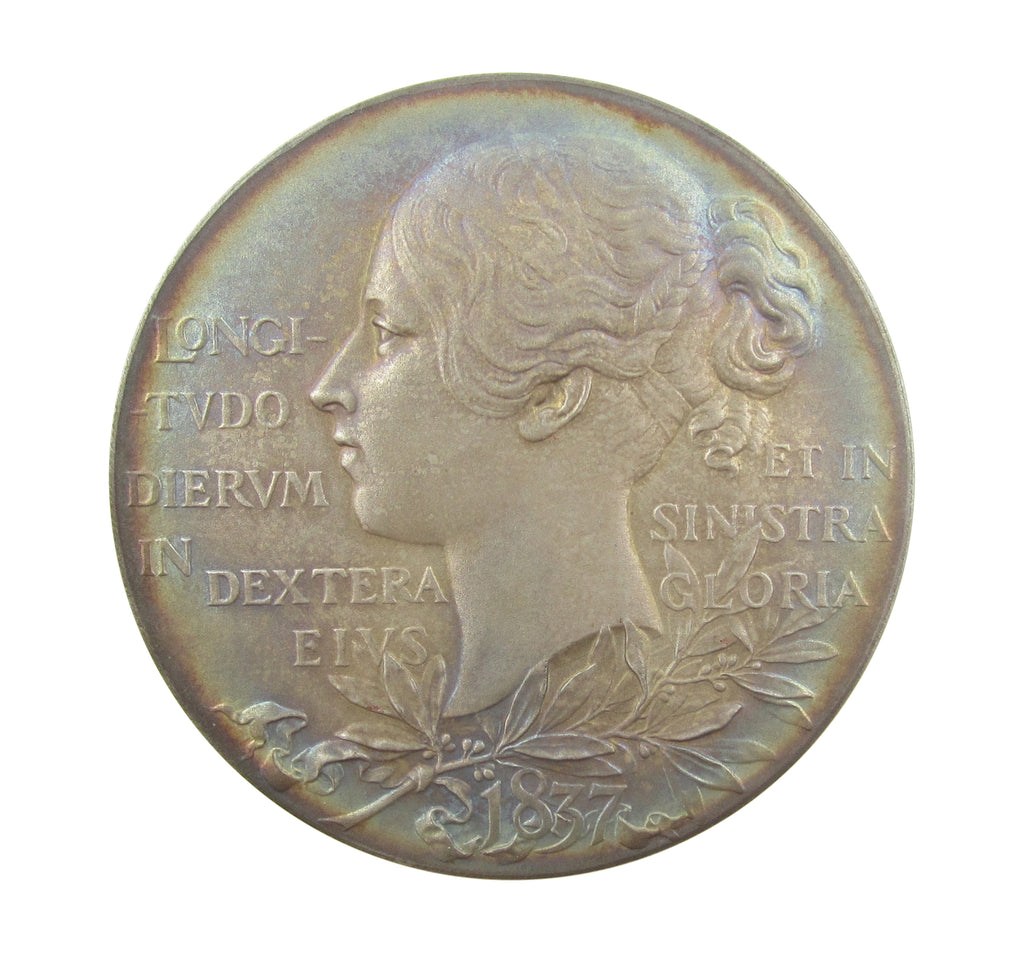 Obverse with veiled head of Victoria, reverse featuring young head.
