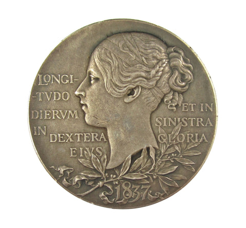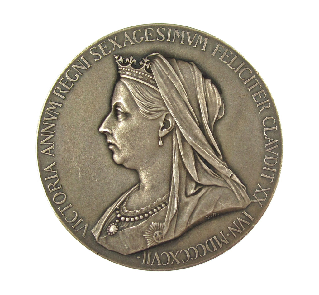 Obverse with veiled head of Victoria, reverse featuring young head.