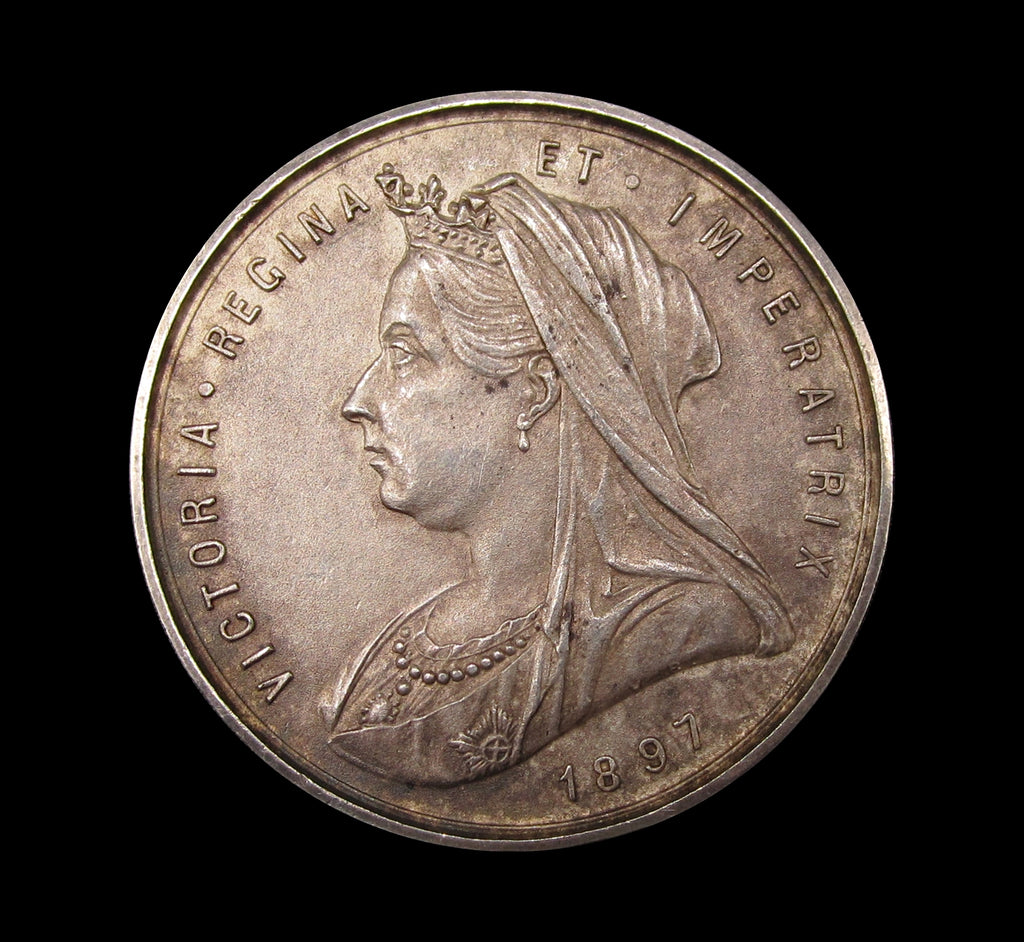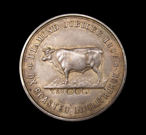 Obverse with veiled head bust, reverse with an ox in field, legend around and hallmarked below.