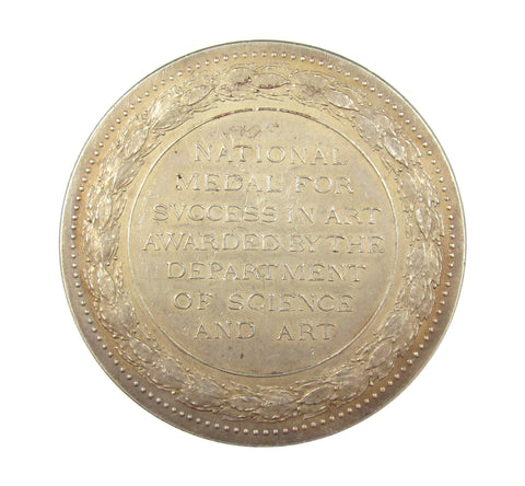 National medal for success in art awarded by the department of science and art. Edge inscribed 'James A Hancox, Subject 8B2, 1898'.