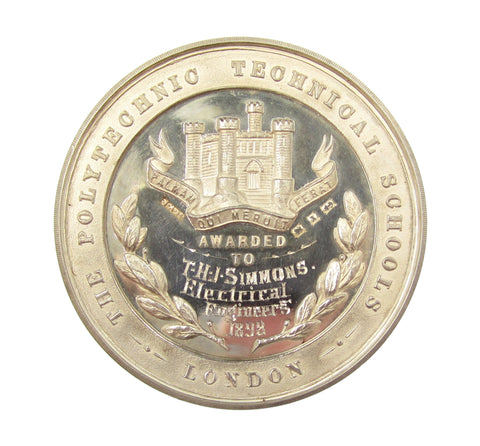 Obverse design after Wyon, similar to that used on the 1845 Prince Albert Medal. Reverse named to 'T.H.J Simmons - Electrical Engineers - 1898'.