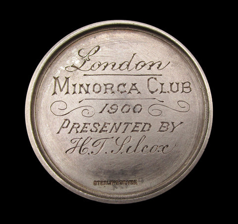 Minorca Club silver prize medal. Presented by H.J. Silcox.