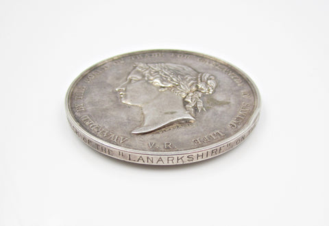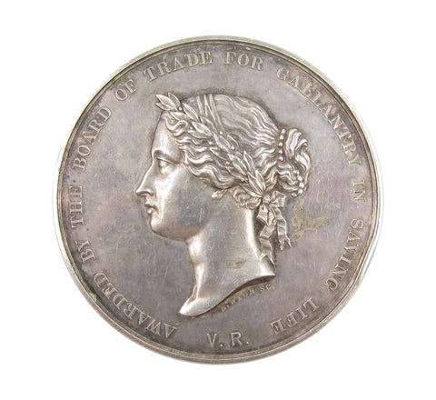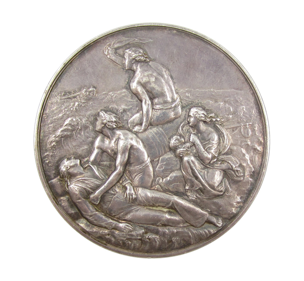 Obverse with youned head bust of Queen Victoria, reverse with shipwreck scene, lifeboat in the distance. Edge engraved 'Archibald Acutter, Wreck of the "Lanarkshire", on the 28th January. 1901'.