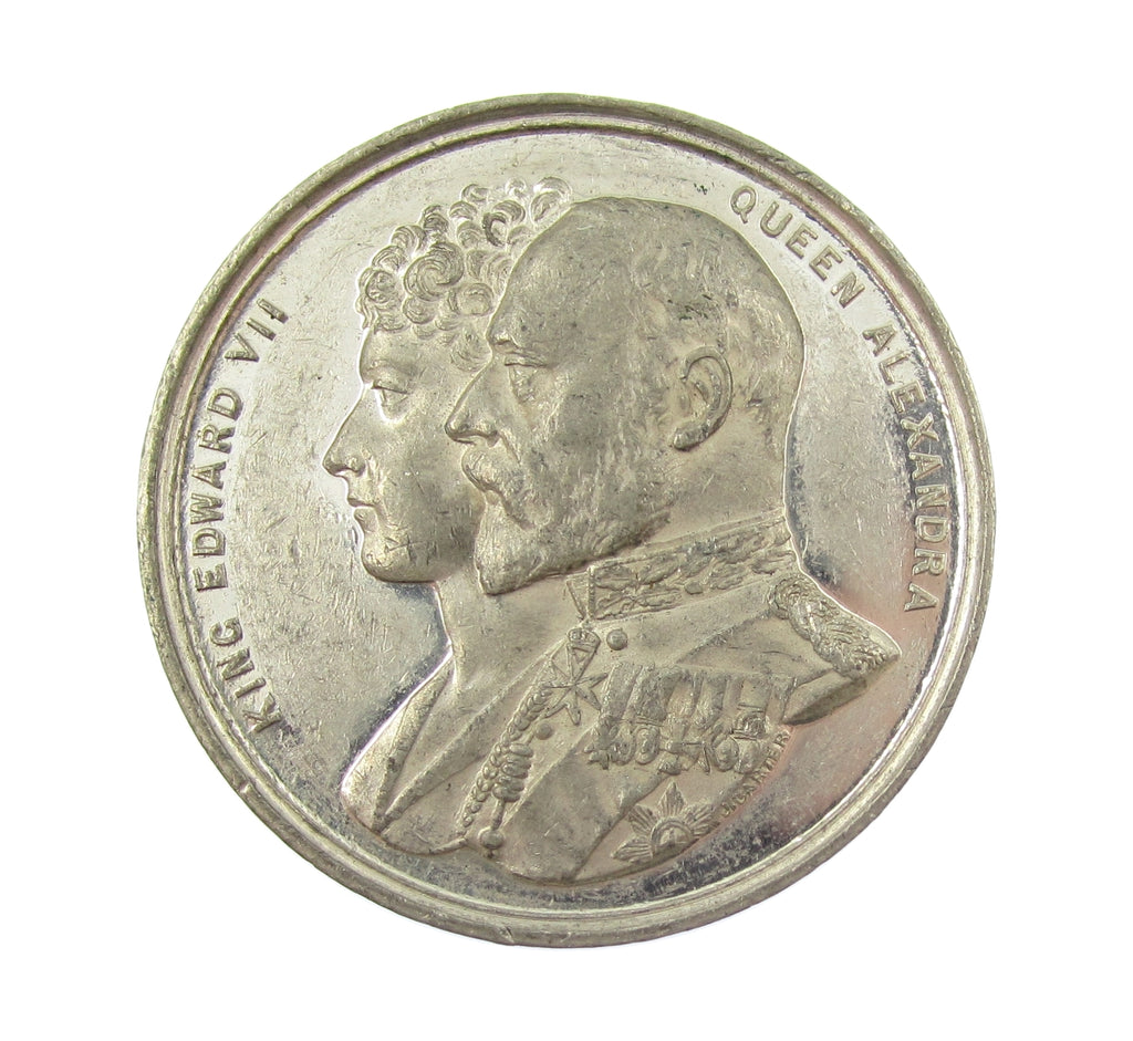 Obverse with conjoined busts, reverse with royal shield with crossed sceptres on crowned mantle within open wreath.