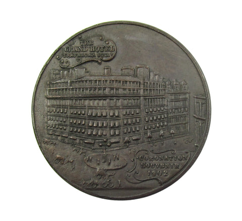 Obverse with conjoined busts, reverse with view of hotel.