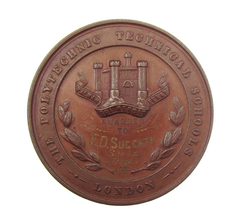 Obverse design after Wyon, similar to that used on the 1845 Prince Albert Medal. Reverse named to 'E.D Suggate' 1905 (bronze) and 1908 (silver).