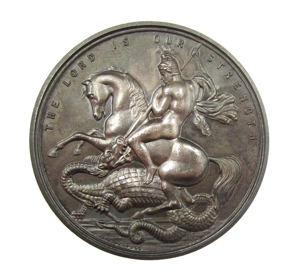 An attractive award medal. Good Extremely Fine, the silver medal with attractive deep toning.