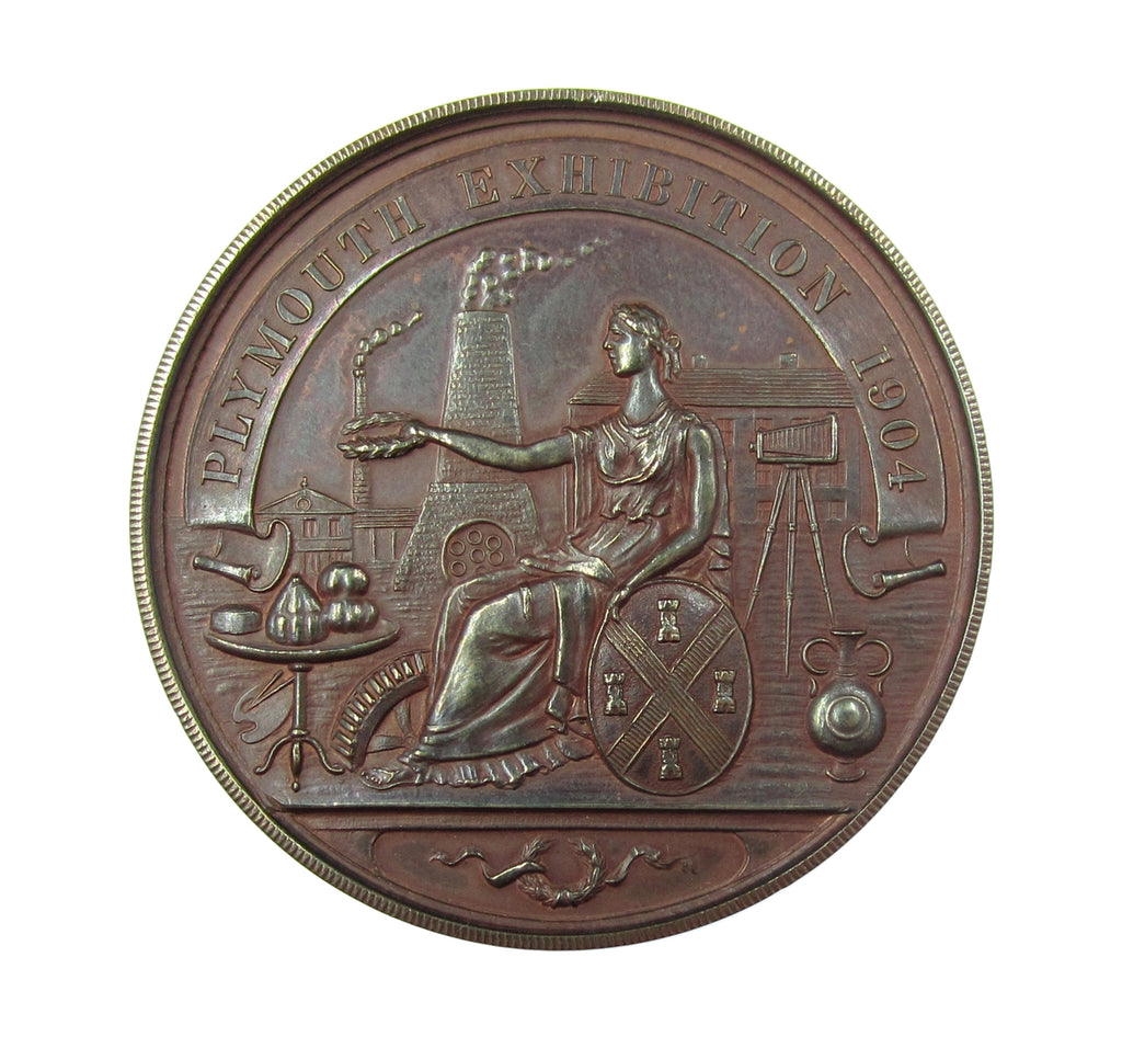 Obverse with industry seated amongst various trades, reverse with view of Eddystone Lighthouse.
