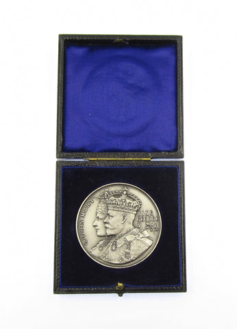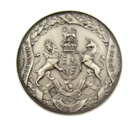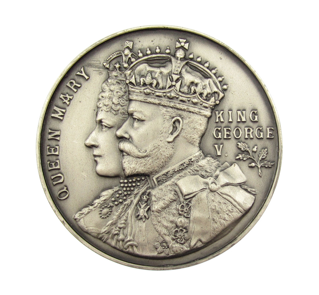 Obverse with conjoined busts of George V & Queen Mary, reverse with the royal arms within an enclosed wreath. Hallmarked in reverse field.
