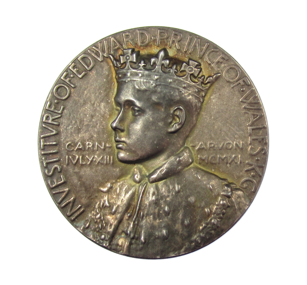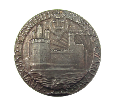Reverse showing Caernarvon Castle, obverse with portrait of young Prince of Wales.