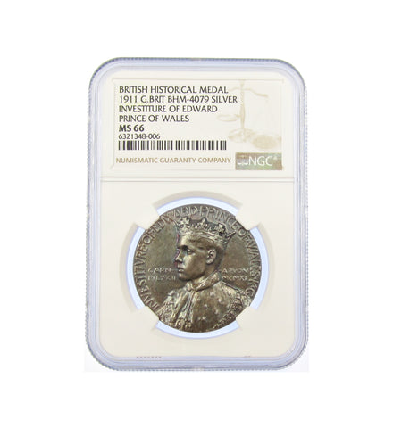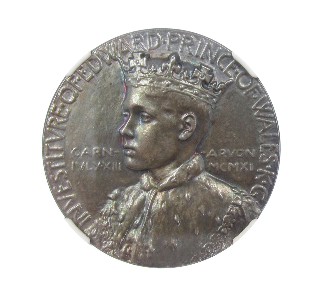 Reverse showing Caernarvon Castle, obverse with portrait of young Prince of Wales.