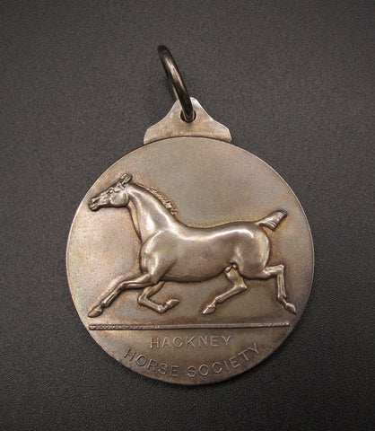 Obverse with side view of horse and rider, Mappin & Webb hallmarks below, reverse with horse galloping.