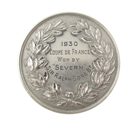 Obverse with yacht in full sail, reverse engraved within wreath '1930 - Coupe de France, Won By "Severn" - Sir Ralph Gore Bt'.