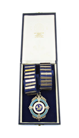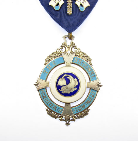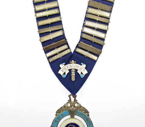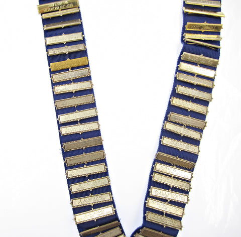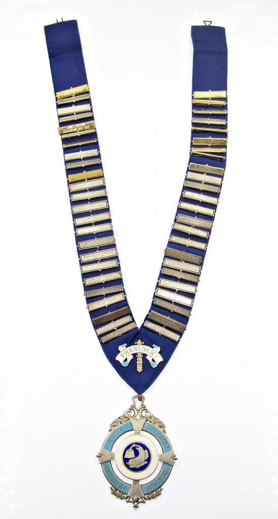 Mounted on blue ribbon with 48 metal bars (one gold) attached bearing the names of all Presidents of the Federation from 1933-2019.