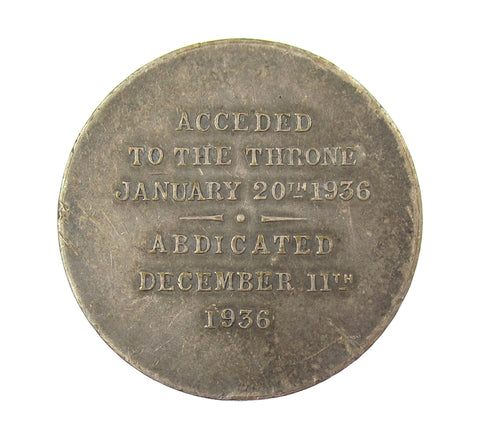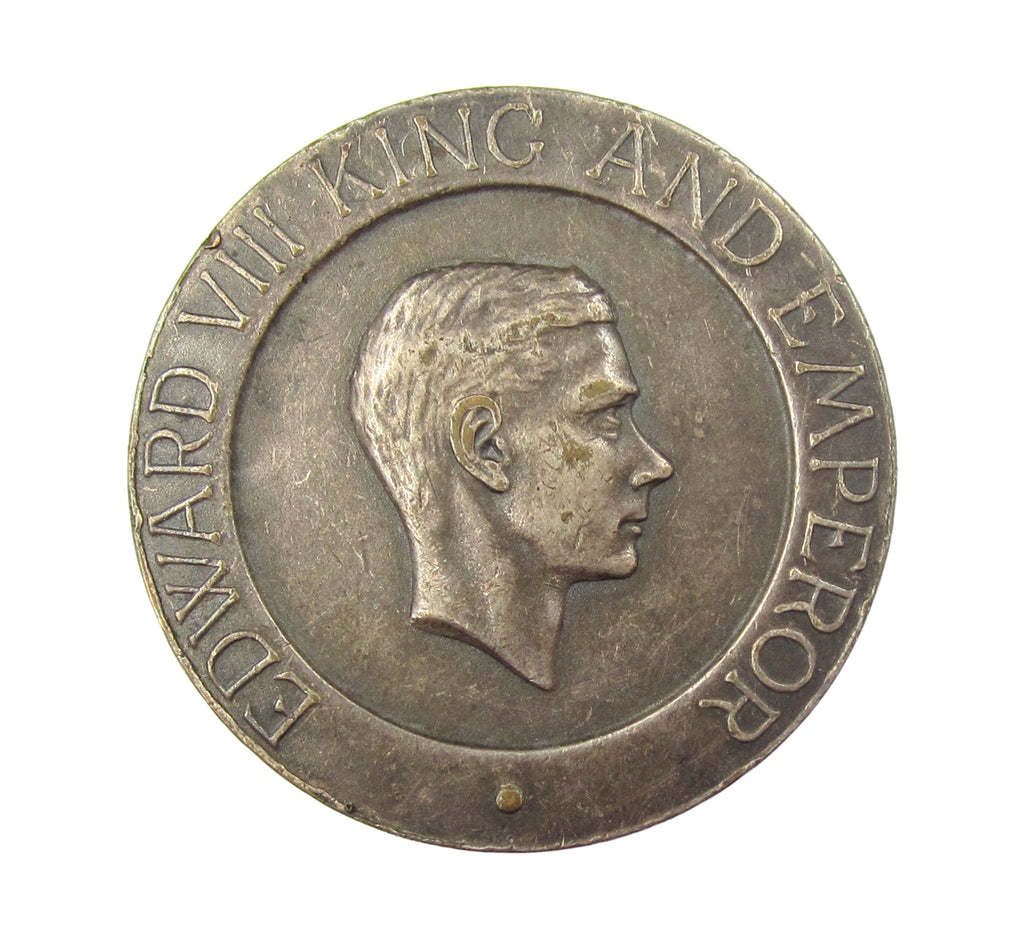 Obverse with bust of Edward VIII facing right, reverse with details of accession and abdication.